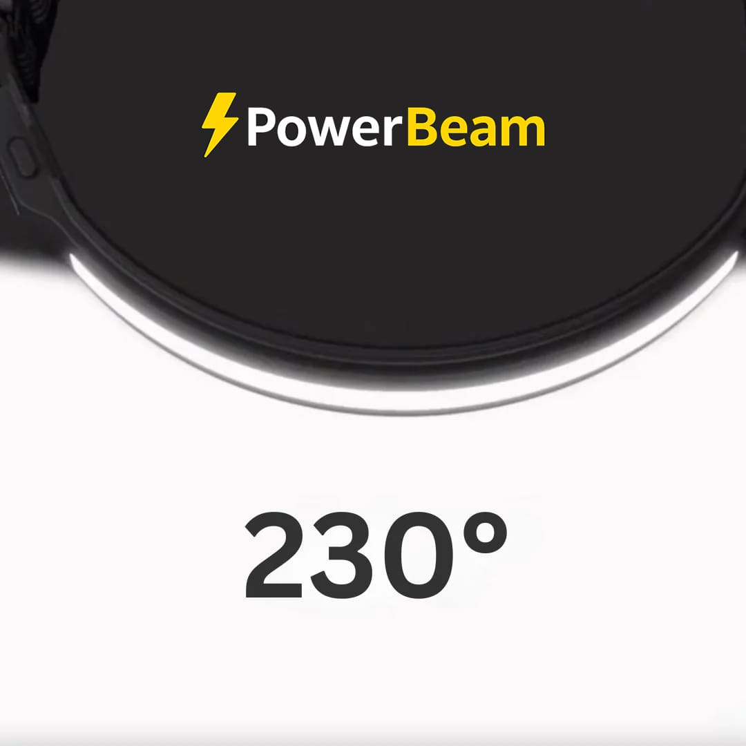 Med fem lysindstillinger – høj, mellem, lav, blinkende og fokuseret lys – kan PowerBeam tilpasses forskellige lysforhold, fra bred belysning af et område til mere præcist arbejde.